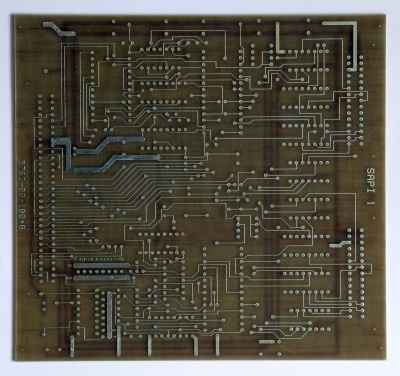 Na desce je několik chyb … zkrat u C2 (opraveno), chybějící spoj VCC u X3 (opraveno) chybějící odpor u IC9B (7405) (neopraveno) …